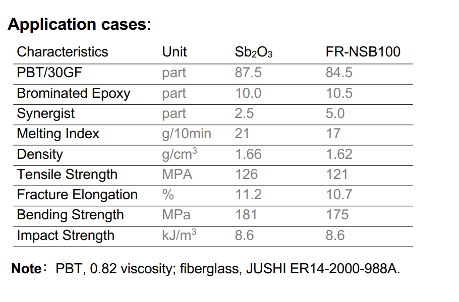 FR-100 е бел прав, кој е дизајниран за PBT како замена за антимон оксид (SB2O3)